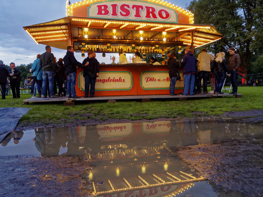 Die Kleinen hatten aber trotzdem Spaß, so sie denn mit Gummistiefeln ausgerüstet waren. Allenthalben sah man Jungs und Mädchen durch die tiefen Pfützen patschen, von denen auch die Wege viele aufzuweisen hatten. Die meisten Gäste nahmen die Wetterbedingungen aber mit Humor, letztlich war jeder froh dass es zumindest nicht mehr regnete.