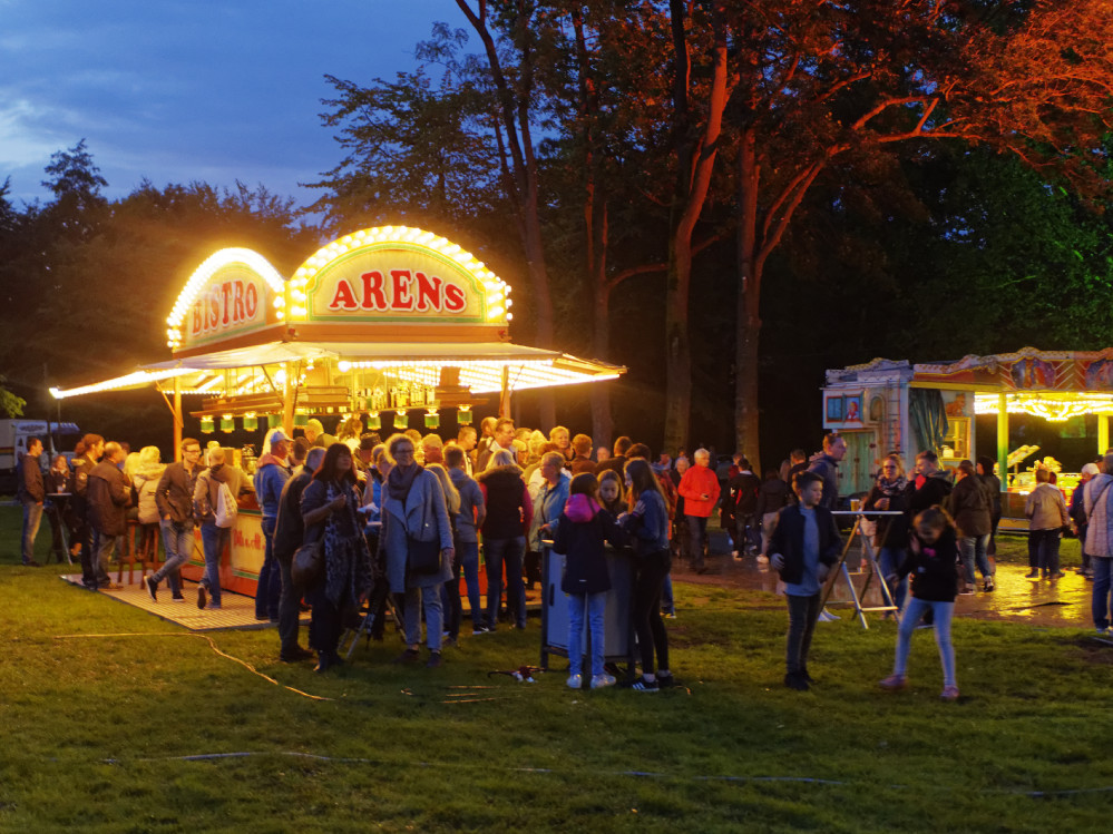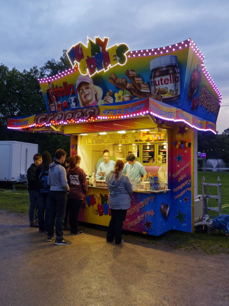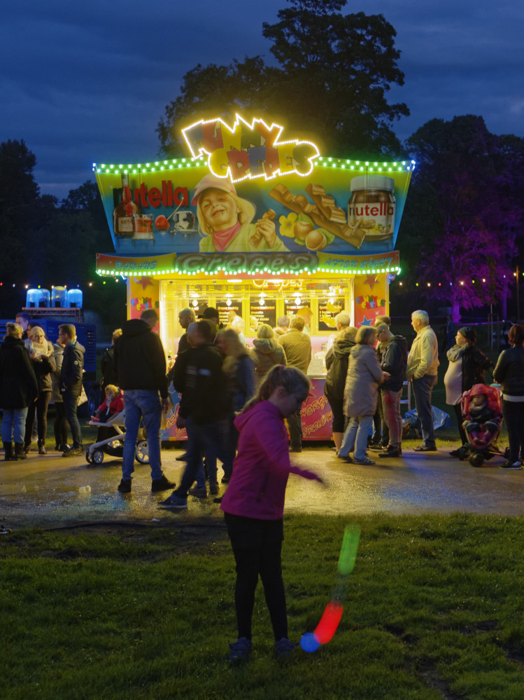 Zahlreiche Imbissbuden boten allerlei Leckereien von Currywurst über gebratene Champignons bis zu süßen Crepes. Das Kinderkarussel war bei den Kleinen sehr beliebt und die Großen hatten nicht nur an den Bierständen ihren Spaß. Etliche Händler boten leuchtende Accessoires und Kinderspielzeug an, was auch auf großes Interesse seitens der BesucherInnen stieß. Durch mobile Stromaggregate konnten in diesem Jahr auch um die große Wiese herum gut besuchte Stände betrieben werden.