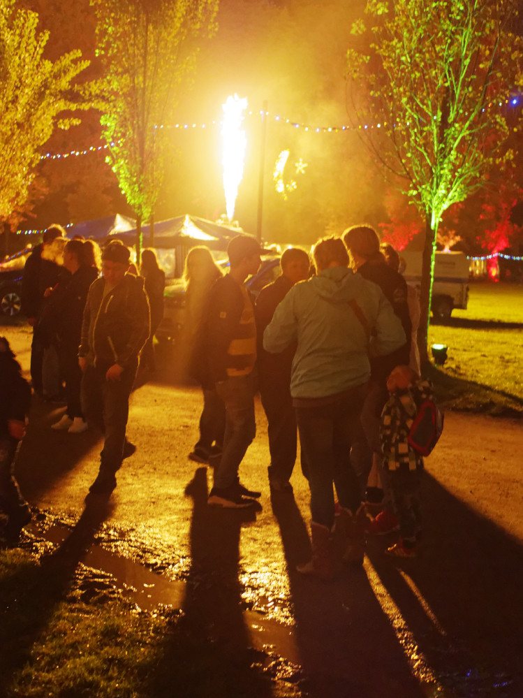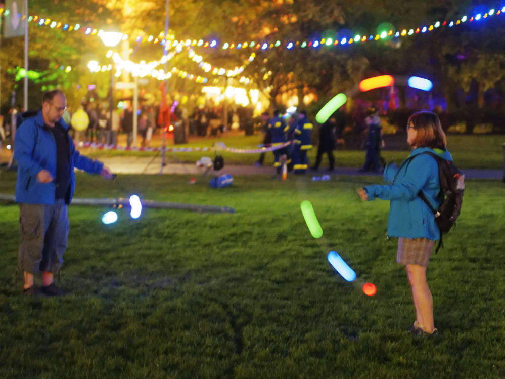 Lichterketten beleuchteten Wege und Plätze, auf denen sich zum Abend hin dann doch geschätzte 3000 Besucher tummelten. In den Bäumen fanden Lichtfiguren ihren Platz und schwimmende Feuerflöße tauchten die kleine Gewässer in fantastisches Licht.