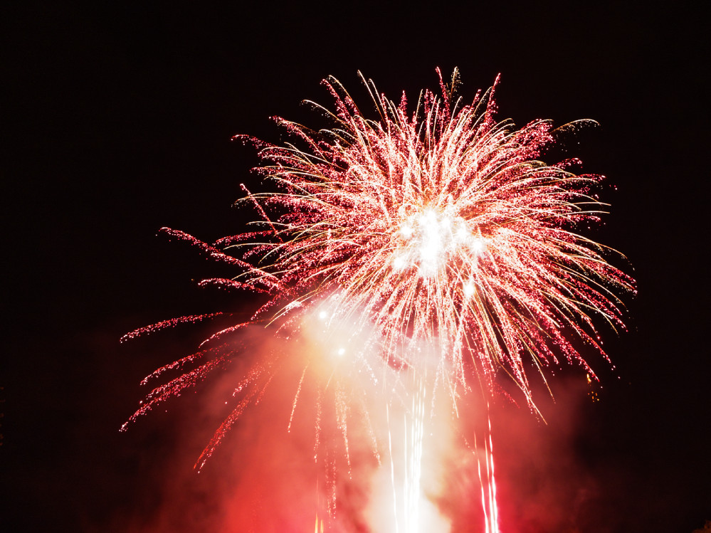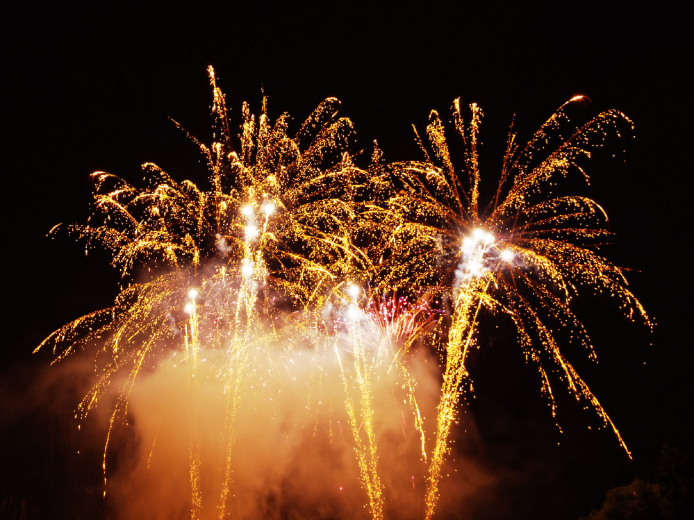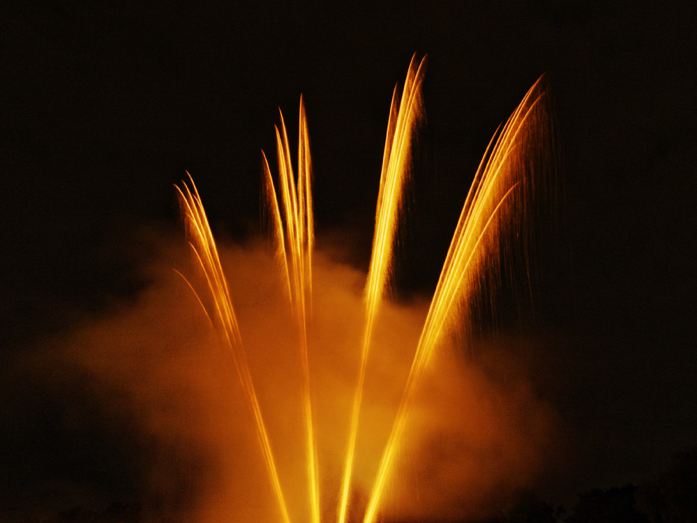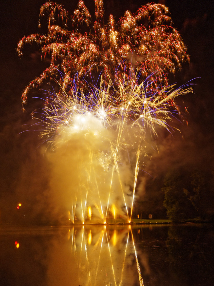 Um halb elf am Abend begann dann wie immer das große Höhenfeuerwerk, das tatsächlich diesmal gar nicht so hoch war. Recht knapp über den Bäumen abgefeuert konnte es sich so zusammen mit den Lichtinstallationen und dem Bodenfeuerwerk im eisglatt erscheinenden See spiegeln, einfach ein großartiger Anblick und ein würdiger Abschluss dieser schönen Veranstaltung.