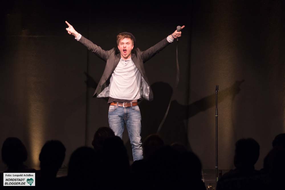 Der Moderator, Kabarettist und Stand-Up-Comedian Moritz Neumeier war am Sonntag Abend im Wichern Kulturzentrum mit seinem Programm „Jung, provokativ, großartig!“ zu Gast. Nordstadtblogger Leopold Achilles hat den Abend fotografisch zusammengefasst.