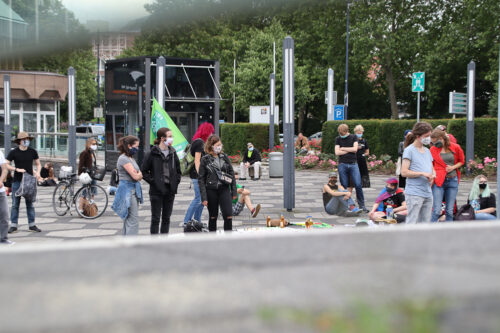Start war, wo auch die Reden gehalten wurden: der „Platz der Alten Synagoge“ und es ging über die Kampstraße Richtung Wall und endete wieder dort. Währenddessen wurden Sprüche wie „Hopp hopp hopp / Kohlestopp“ oder „Ob Kohle aus der Mine / oder Kohle aus der Bank / beidem fehlt die Liebe / beides macht uns krank“ gerufen. Es wurde auch auf den Mindestabstand hingewiesen. Angekommen am Startpunkt erwartete die friedlichen Demonstrant*innen der Song „Deine Schuld“ von der deutschen Punkband „Die Ärzte“.