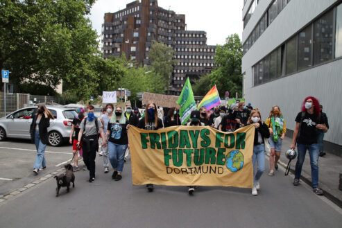 Am gestrigen Freitag gab es die erste Fridays for Future-Laufdemo seit Februar. Rund 40 FFF-Dortmund-Demonstrant*innen wiesen auf die ungerechte Verteilung von Krisenmitteln, die Abwrackprämie und die „Rettung“ der Lufthansa ohne Klimaauflagen hin. Neben Kritik an der Klimapolitik gab es auch Beiträge des Netzwerkes „Campus for Future Dortmund“ und der „Black Community Foundation Dortmund“.