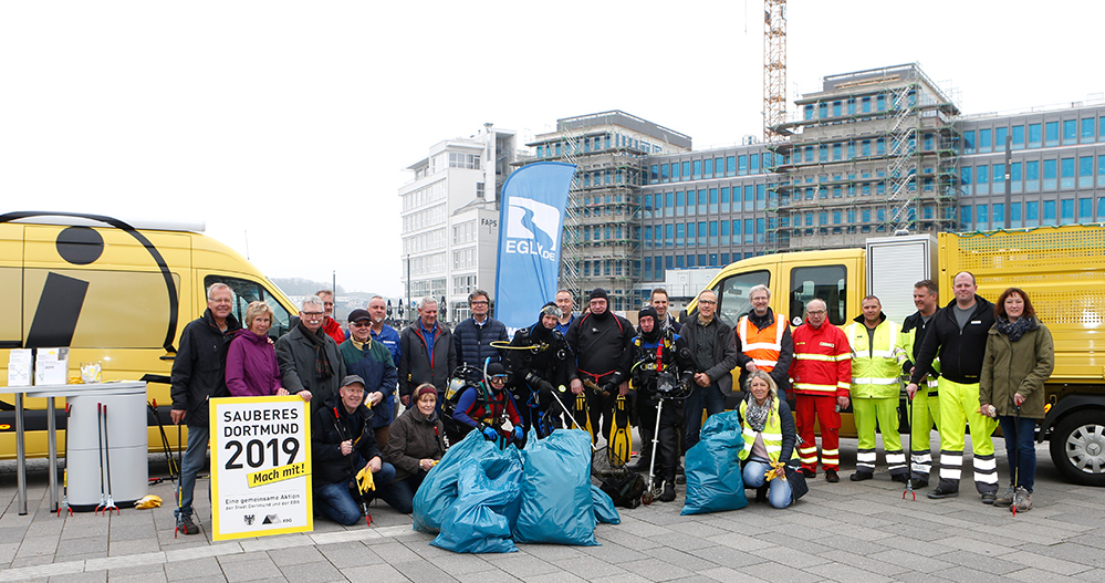 Mit dabei waren auch Vertreter der Emschergenossenschaft und der DSW21. Stadtentwässerung und Umweltamt hatten den Termin organisiert. Die Aktion ist Teil der Kampage „Sauberes Dortmund 2019 – Mach mit!“.