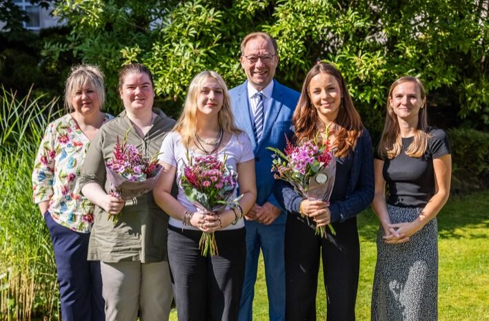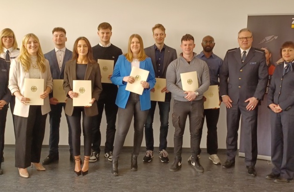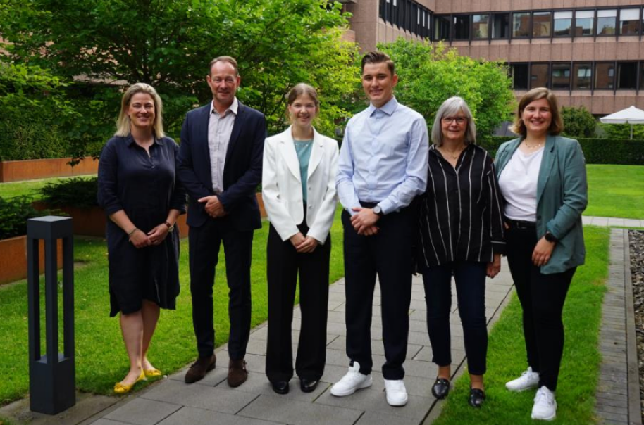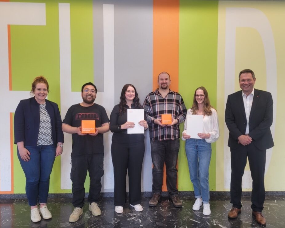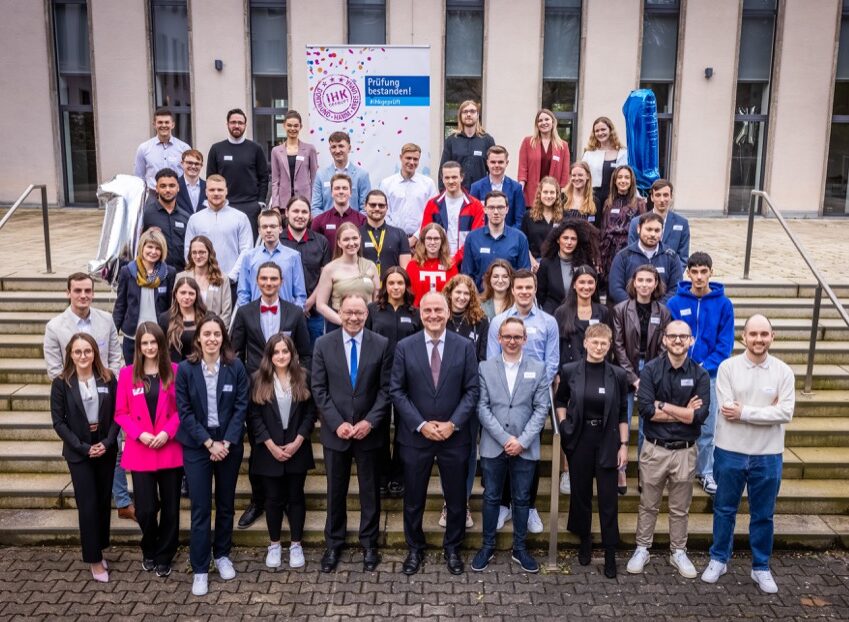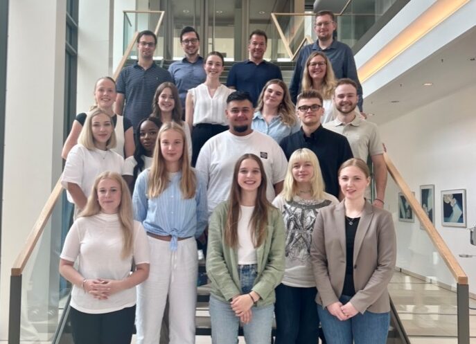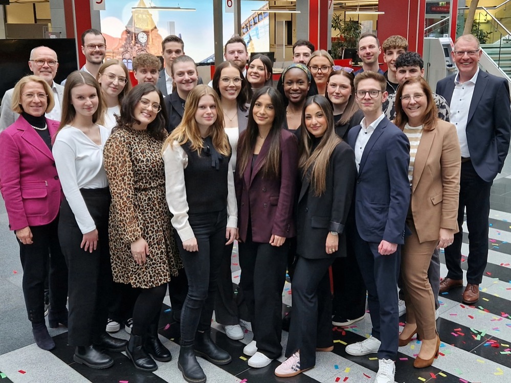 Auf dem Foto von links nach rechts: Simon Schaefer, Fachinformatiker für Daten- und Prozessanalyse, Tom Vethacke, Kfz-Mechatroniker, Glenn Schulz, Berufskraftfahrer DOGA, Justin Focht, Industriekaufmann, Beleza Opondo, Industriemechaniker, Salih Can Memis, Industriekaufmann, Noah Boida, Berufskraftfahrer DOGA, Noah Sanchez Hoff, Umwelttechnologe für Kreislauf- und Abfallwirtschaft, Svenja Gerads, Industriekauffrau DOGA, Mohamed Acachar Boudara, Kaufmann für Spedition und Logistikdienstleistung DOGA, Lea König, Industriekauffrau, David Wolf, Umwelt-technologe für Kreislauf- und Abfallwirtschaft, Ajinthan Vijeyarajah, Industriekaufmann DOGA, Oliver Ader, Geomatiker, Emil Schaffrin, Umwelttechnologe für Kreislauf- und Abfallwirtschaft, Lukas Kaiser, Geomatiker, Caner Sancak, Berufskraftfahrer DOGA, Aleks Mlynarski, Berufskraftfahrer DOGA, Máté Daniel Kiss, Berufskraftfahrer DOGA.
