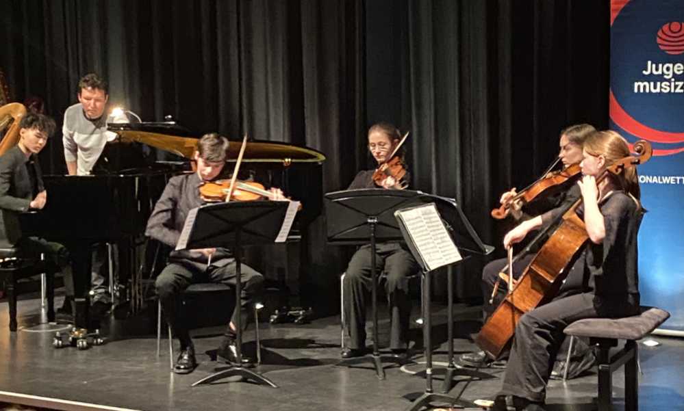 Der erste Preis ging an: Philipp Chernomor, Hannah Maria Laufen (Violine), Josefine Jüngermann (Viola), Berta Dieterle Biosca (Violoncello), Tim Grümmer (Klavier, Klavier-Kammermusik), Hannah Maria Laufen (Violine solo), Piet Bracklow (Percussion solo) und Joseph Sonne (Klavierbegleitung, Kategorie Vokal-Duo).