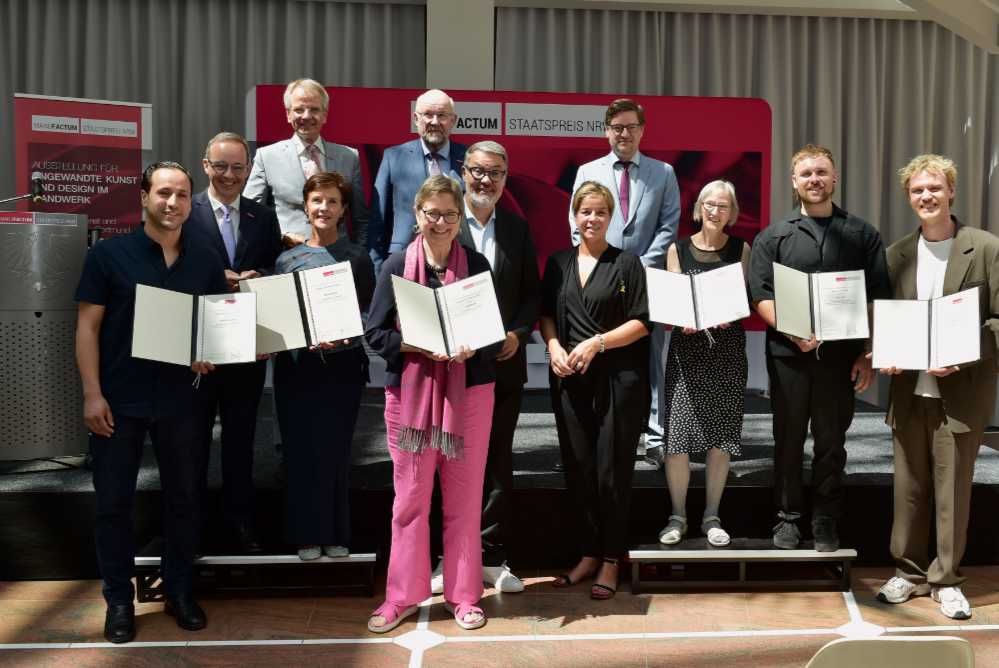 Der Staatspreis MANUFACTUM NRW für angewandte Kunst und Design im Handwerk wird alle zwei Jahre in sechs Kategorien für herausragende Gestaltungsleistungen vom Land NRW verliehen. Überreicht hat ihn Mona Neubaur, stellvertretende Ministerpräsidentin und Wirtschaftsministerin des Landes Nordrhein-Westfalen im Rathaus der Stadt Dortmund an insgesamt sechs Preisträger:innen.