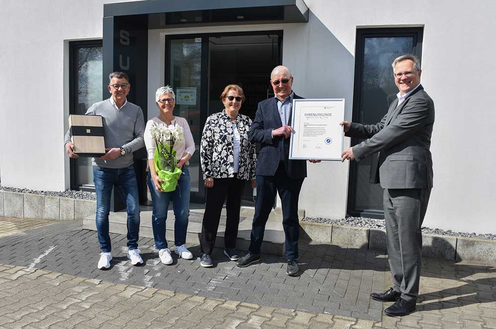 Seit nunmehr 75 Jahren – in vierter Generation – existiert das Bauunternehmen Surhove und steht dabei für herausragende Leistungen im Industrie- und Immobilienbereich. Innungsgeschäftsführer Joachim Susewind von der Baugewerbe-Innung Dortmund und Lünen kam darum im April persönlich zum heutigen Firmensitz an der Lütge Heidestraße 66 in Dortmund, um zum Jubiläum zu gratulieren. „Wir von der Baugewerbe-Innung sind immer wieder begeistert, wenn Unternehmen sich so lange erfolgreich halten und weiterentwickeln und uns zeigen, was man mit Fleiß und Ideen alles erreichen kann. Wir gratulieren sehr herzlich“, freute sich der Geschäftsführer und übergab eine Ehrenurkunde an die Firmeninhaber der Surhove GmbH.