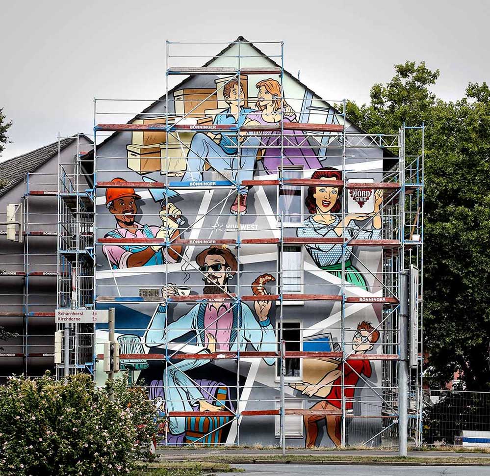 Besonders im letzten Jahr hat sich bezüglich Sanierung und Modernisierung einiges getan. Viele Fassaden rund um den Borsigplatz wurden mit riesigen Kunstwerken verschönert und mit Balkonen versehen. Als Dortmunder Unternehmen freut sich die Cieslik GmbH sehr, auch in diesem Jahr an der Verschönerung mitzuwirken. Bereits im letzten Jahr durfte sie Ihre Gerüste für das Projekt Borsig-West zu Verfügung stellen. Auch bei den nunmehr geplanten Modernisierungen und Erneuerungen werden ca. 18.000 m² Gerüst benötigt. Für die Cieslik GmbH ist es eine große Ehre, ihrer Heimatstadt etwas zurückgeben zu können und mit daran zu arbeiten, den schlechten Ruf des Nordens wieder ins rechte Licht zu rücken.