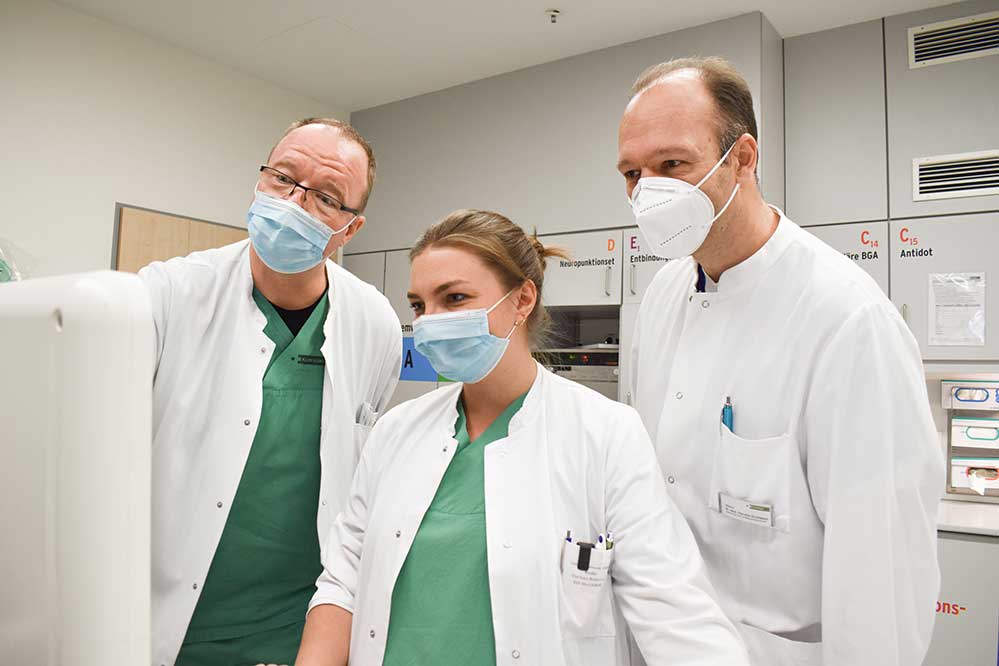 Bildzeile: v.l. Dr. Udo Schniedermeier (leitender Arzt der ZNA im Klinikum Mitte), Clarissa Schwarz (Oberärztin in der ZNA im Klinikum Mitte) und Dr. Thorsten Strohmann (leitender Arzt der ZNA im Klinikum Nord).