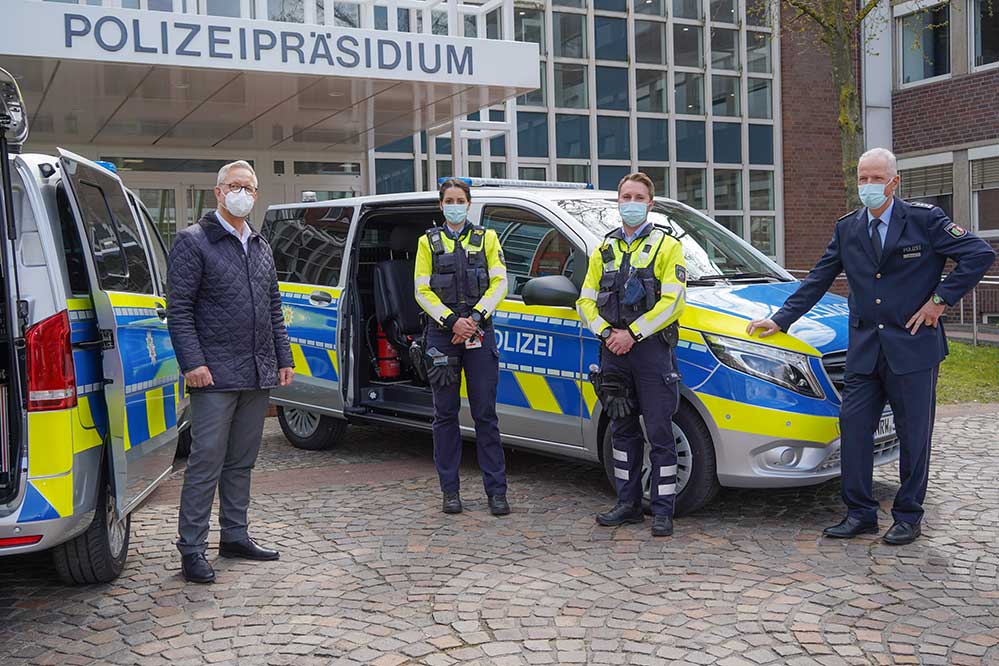„Ich freue mich, den Kolleginnen und Kollegen die neuen Streifenwagen übergeben zu können und durfte mich von der Funktionalität der Fahrzeuge überzeugen. Die Streifenwagen bringen im Ergebnis vor allem eins: Mehr Sicherheit für die eingesetzten Polizeibeamtinnen und Polizeibeamten.“, so Polizeipräsident Gregor Lange.