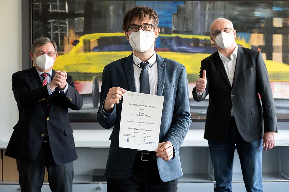 Statt der sonst üblichen Freisprechungsfeier mit rund 200 Teilnehmern, gab es diesmal bei der Kraftfahrzeug-Innung Dortmund und Lünen nur einen kleinen Corona-konformen Empfang: Phillip Kempf, Geselle beim BMW Autohaus Erwin Schmidt in Lünen, erhielt als einer von drei Eingeladenen die Urkunde als bester Absolvent der Winter-Gesellenprüfung 2020/2021. „Herzlichen Glückwunsch zur bestandenen Prüfung”, gratulierte Obermeister Christoph Haumann. „Sie haben es in einer schwierigen Zeit geschafft, den besten Abschluss zu machen. Das verdient unseren Respekt und unsere Anerkennung.“ Im Beisein von Geschäftsführer Ludgerus Niklas und dem Prüfungsausschussvorsitzenden Markus Komorek überreichte er dem frischgebackenen Gesellen anschließend eine Ehrenurkunde verbunden mit den besten Wünschen für eine erfolgreiche berufliche Zukunft in der Branche.