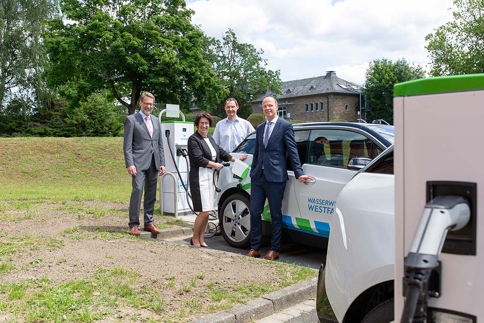 Eine individuell passende technische Infrastruktur steht dabei im Fokus. Bei WWW kommen leistungsfähige und intelligente Ladesäulen zum Einsatz, mit denen rund um die Uhr schnelles Laden garantiert ist. „Mit der Stromproduktion aus den Ruhr-Wasserkraftwerken ist auch bei fehlendem Solar- und Windstrom jederzeit gewährleistet, dass die Elektrofahrzeuge in der Dortmunder Region mit Ökostrom geladen werden können. Bei den Wasserwerken Westfalen in Hengsen können vier Fahrzeuge gleichzeitig aufgeladen werden. Eine Schnellladefunktion ermöglicht, E-Autos innerhalb von circa einer Stunde aufzutanken“ erklärt DEW21-Geschäftsführer Technik Peter Flosbach. „Mit sechs Ladepunkten und Leistungen von je 22 oder 50 kW können auch künftige E-Fahrzeuggenerationen zügig geladen werden.“ Für den zukünftigen Ausbau sind bei WWW weitere Elektrofahrzeuge geplant. Dabei stehen neben PKW vor allem auch Kleintransporter für die technischen Bereiche im Fokus.