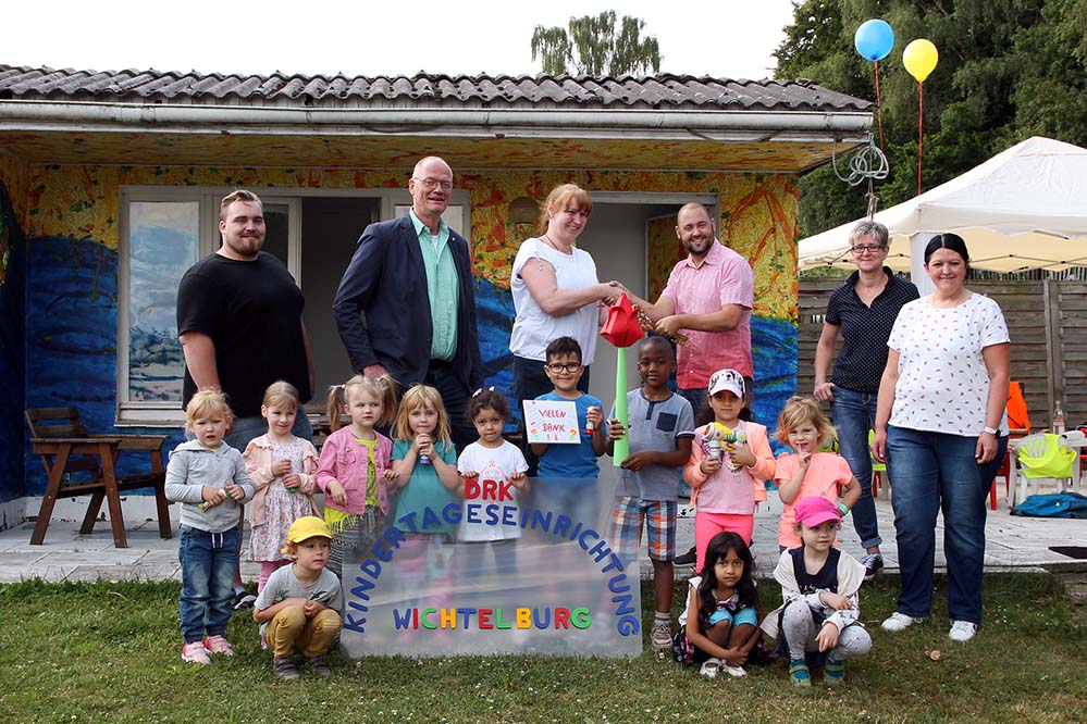 Mit bunten Sonnenschirmen, genügend Wasser und dem neuen Werbefahrrad der FreiwilligenAgentur ausgestattet, machte sich die Gruppe auf den Weg zur FABIDA Kita an der Speckestraße. Hier begrüßt Ludgera Wollermann die Interessierten und erklärt, in welchen Bereichen sie dringend ehrenamtliche Unterstützung benötigen: „Toll wäre es, wenn wir jemanden finden würden, der uns bei der Reparatur unserer Spielfahrzeuge, wie der Mooncars hilft. Generell, sind der Kreativität bei uns aber keine Grenzen gesetzt, sei es eine Bastelwerkstatt für Basare, ein Nähkurs für die Mütter oder eine Holzwerkstatt für Väter“, berichtet Ludgera Wollermann.
