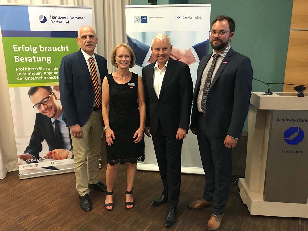 Dr. Bernhard Klocke (Geschäftsführer WWW), Heike Heim (Vorsitzende der DEW21-Geschäftsführung), Bernd Heinz (Geschäftsführer WWW), Peter Flosbach (Geschäftsführer DEW21)