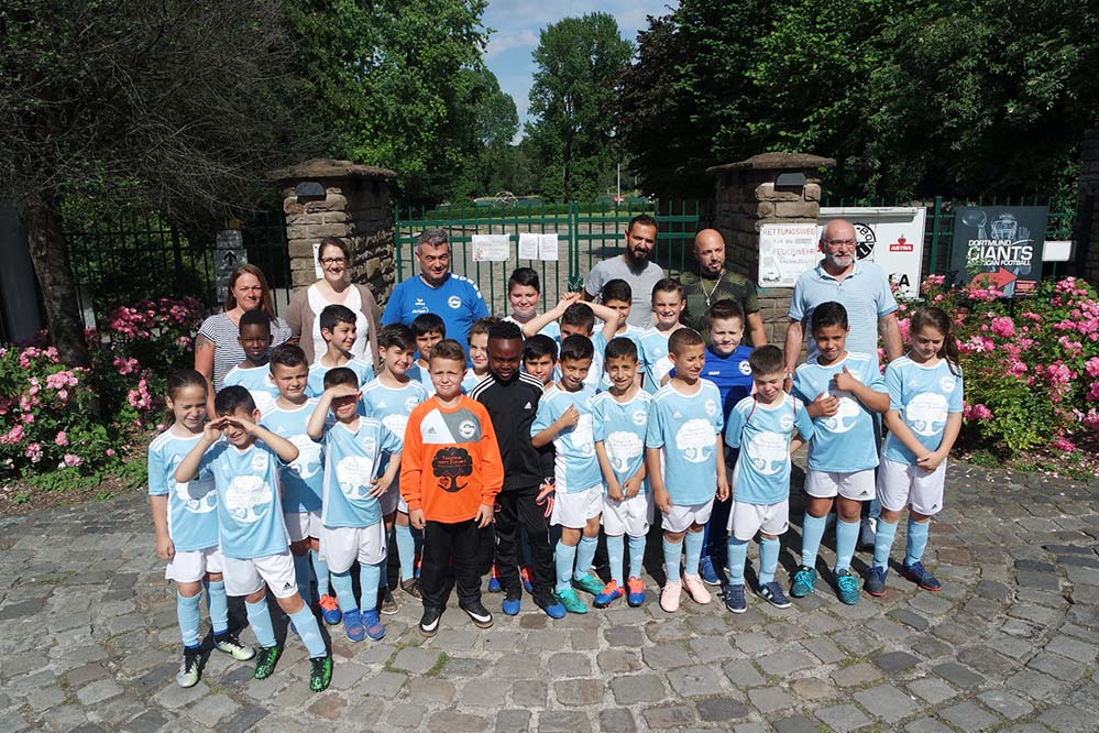 Heute präsentierten die Jugendlichen stolz ihre insgesamt 50 hellblau leuchtenden Trikots, die das neu entwickelte Logo mit der Botschaft des Zusammenhalts und Verbundenheit der Jugendlichen mit der Nordstadt, speziell mit dem Hoeschpark, nach außen sichtbar machen. Das Projekt wurde mit 4.700 € aus Mitteln des Quartiersfonds Nordstadt gefördert.