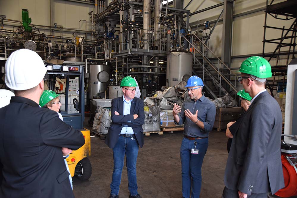 Zum Auftakt der diesjährigen Sommertermine der SPD-Ratsfraktion hat ein Besuch der Fachfraktion im Ausschuss für Wirtschafts- und Beschäftigungsförderung bei der Firma NOVIHUM Technologies GmbH am Dortmunder Hafen stattgefunden. Hierbei hatten die Ratsvertreter*innen die Möglichkeit die Produktionshalle des jungen Unternehmens zu besichtigen. Novihum Technologies ist im Bereich Agrarchemie tätig und produziert in Dortmund ein Dauerhumuspräparat zur Düngung ausgezehrter Böden. Dieser Dauerhumus wird aus Braunkohle hergestellt. Durch die chemische Nutzung von Braunkohle als Dünger, statt diese zu verbrennen, soll der in Dortmund produzierte Humus dabei helfen den Ertrag in der Landwirtschaft zu steigern und dabei gleichzeitig helfen CO2 zu speichern.