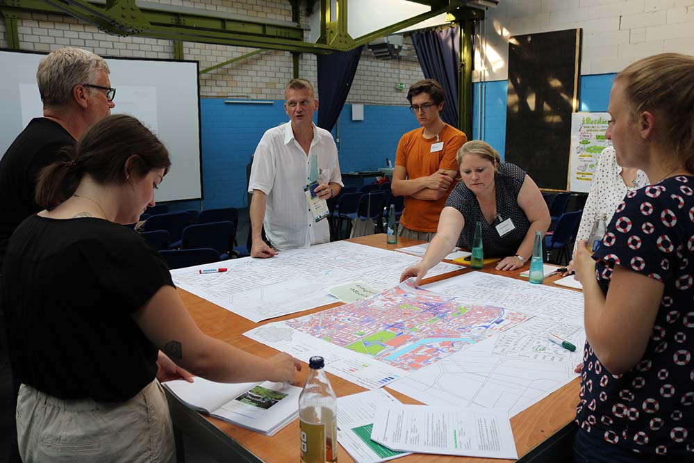 Innenhöfe begrünen, Regenwasser speichern, Trinkwasserbrunnen errichten – diese und viele weitere Ideen hatten die 48 Teilnehmenden der Auftaktveranstaltung des Projekts „iResilience“ im Kulturort Depot Ende Juni.