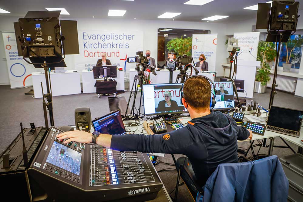 Bildzeile: Live gestreamt aus dem Haus der Evangelischen Kirche: die Herbsttagung der Kreissynode im Evangelischen Kirchenkreis Dortmund.