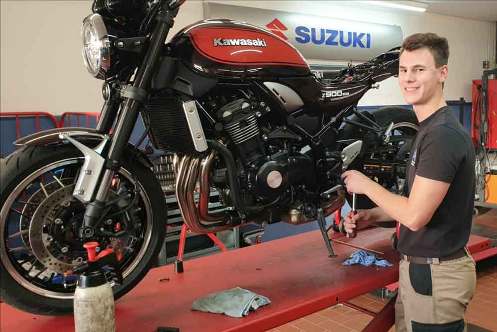 Bildzeile: Zweiradmechatroniker Tim Bretscheider ist Bundessieger beim Leistungswettbewerb des Deutschen Handwerks 2020.
