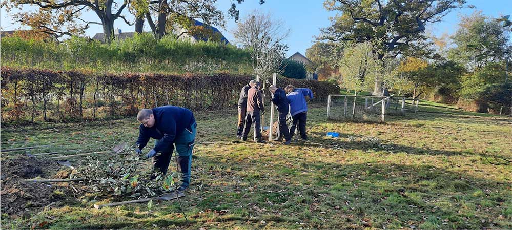 Das Umweltamt pflanzt aktuell neue Obstbäume auf den Streuobstwiesen. Es handelt sich dabei um Apfelbäume, Birnbäume, Pflaumenbäume, Kirschbäume und Mirabellenbäume. Die Pflanzaktion wird von Mitarbeitenden der GrünBau gGmbH und der Werkhof Projekt gGmbH unterstützt. Die 46 Bäume werden auf den Streuobstwiesen in der Kortenstraße, dem Sturhanweg, dem Clematisweg, der Deusener Straße, der Vorsteherstraße, der Schwieringhauser Straße und in der Straße Friedrichshagen gepflanzt. Bei den Obstbäumen handelt es sich um alte, robuste und resistente Sorten, die auch längere Trockenperioden überstehen.