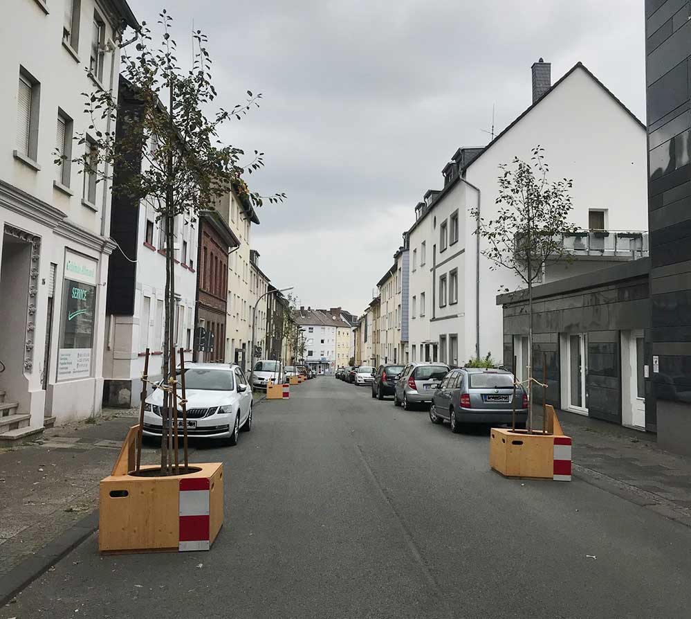 in diesem Jahr 15 Nordmanntannenbäume den Marktplatz Westerfilde entlang