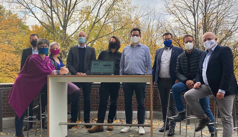 Bildzeile: v.l.n.r.: Matthias Dralle (HFS), Susanne Wohlfeil (HFS), Carmen Skolaja (SL‘, HFS), Henning Schmidt (WIHOGA),) Steffen Boßmann (HFS), Bernhard Fischer-Eymann (HFS), Hergen Kuck (WIHOGA), Alexander Volta (HFS), Harald Becker (SL, WIHOGA).Auftakttreffen im Oktober mit physischer Anwesenheit unter Coronabedingungen an der HFS Hamburg kurz vor dem Lockdown. Dabei wurde das Projekt auch auf eine digitale Plattform gestellt, die eine dynamische Weiterbearbeitung auch auf Distanz ermöglicht.