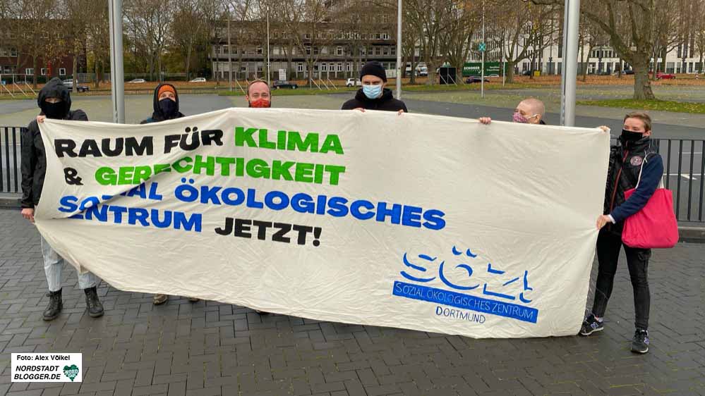 Vor der konstituierenden Sitzung des Rates der Stadt Dortmund setzte die Initiative SÖZ ein Zeichen. Aufgrund neuer Mehrheitsverhältnisse könnte dies einen Umschwung in die bisherige politische Landschaft bringen. Der Initiativkreis für ein selbstverwaltetes sozial-ökologisches Zentrum (SÖZ) in Dortmund möchte den Umschwung nutzen und fordert daher die Grundlage für ein SÖZ – einen gemeinsam erarbeiteten und getragenen Ratsbeschluss – von Beginn der Legislaturperiode an mitzudenken und entsprechend zu handeln. Foto: Alex Völkel