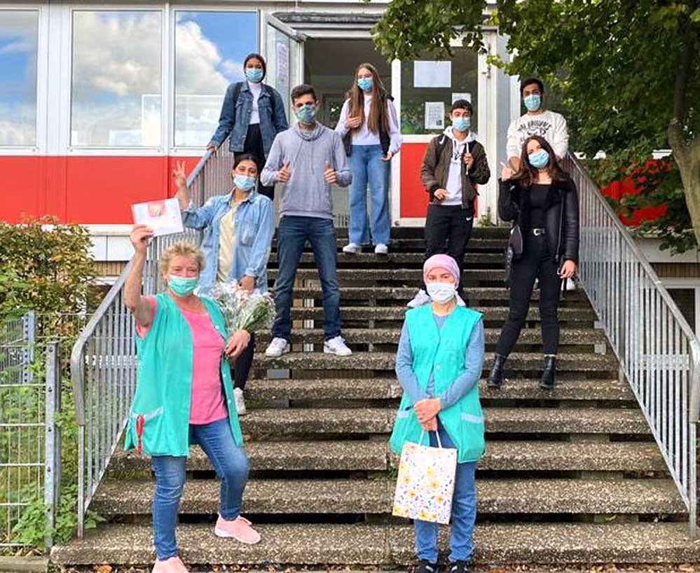 Die Schülervertretung der Anne-Frank-Gesamtschule hat sich ganz herzlich bei dem Team der Reinigungskräfte bedankt. Sie würdigten die Mitarbeiterinnen als einen wichtigen Teil ihrer Schulgemeinschaft. Ihrer harter körperlicher Arbeit ist es zu verdanken, dass die Schule zu einem Lebensraum wird, in dem sich die Schüler wohlfühlen können. Gerade in Zeiten von Corona zeigt sich, dass ohne ihre Arbeit kein Schulbetrieb stattfinden könnte.