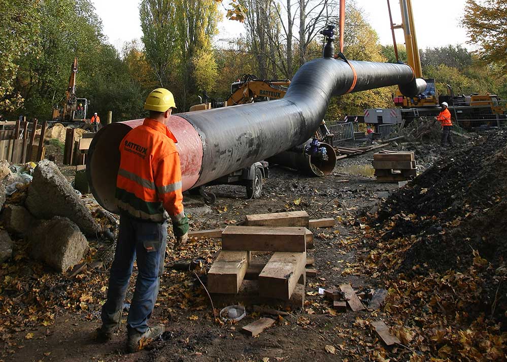 Ein ziemlich dickes Ding hatte die Dortmunder Netz GmbH (DONETZ) Anfang November am Haken. Am Brüggenfeld in Scharnhorst überquert der Dortmunder Netzbetreiber mit einer Wasserversorgungsleitung mit 80 cm Durchmesser den Erlenbach. Bei einem Jahrhunderthochwasser wäre die Leitung aber in Gefahr, daher hat sich DONETZ entschlossen, die Leitung entsprechend höher zu führen. Hierzu wurde ein 25 m langer über 7 t schwerer so genannter Rohrdüker – ein Rohr mit entsprechenden Biegungen – in einem Stück neu eingesetzt. Nachdem das Unternehmen am Vortag das alte Teilstück ausgebaut hatte, wurde der neue Rohrdüker mittels eines 130 t Autokrans in Position gebracht und montiert. Da er vorab gebaut, isoliert und desinfiziert wurde, konnte die Leitung, mit der große Teile der nördlichen Stadtgebiete versorgt werden, bereits kurze Zeit später wieder in Betrieb genommen werden.