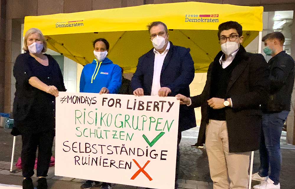 FDP-MdB Müller-Böhm, Junge Liberale und betroffene Bürger demonstrieren zu Corona-Maßnahmen