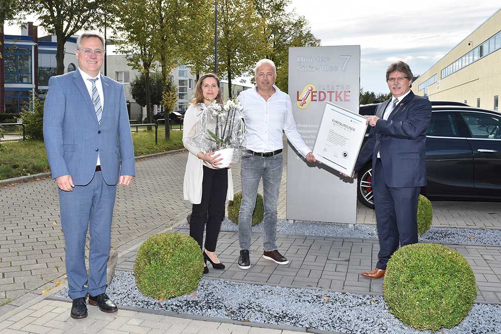 Bildzeile: v.l. Ratsmitglied Antje Joest, Nadine Spiekermann, Roman Müller-Böhm, Nils Mehrer.