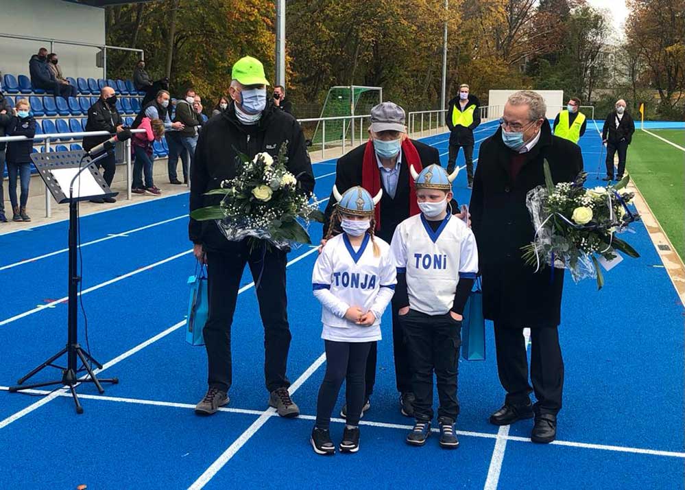 Als der Ambulante Kinder- und Jugendhospizdienst Löwenzahn in das Hinterhaus an der Dresdener Straße zog, war klar, dass die Räume auf Dauer auch barrierefrei erreichbar sein müssen. Magnus Linnhoff fand mit dem ScalaMobil eine effiziente Lösung und überreicht dieses gemeinsam mit Stadionsprecher Nobby Dickel im Namen des Kraft Unternehmensverbundes.