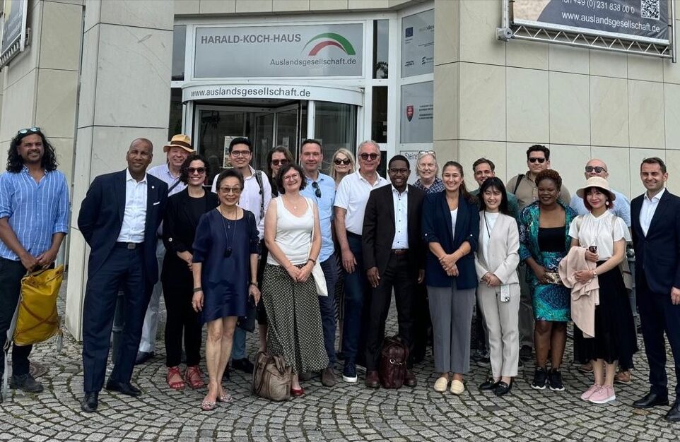 Menschen aus 12 Ländern, u.a. aus Brasilien, Finnland, Sambia und Vietnam, waren zu Gast in der Auslandsgesellschaft. Die 15-köpfige internationale Delegation war sechs Tage auf Einladung der Bundesregierung sowie des Goethe-Instituts zum Thema „urban diplomacy” in Deutschland unterwegs. In Berlin traf die Delegation auf Vertreter kommunaler Spitzenverbände und waren Gast im Auswärtigen Amt. In Dortmund wurden sie empfangen von Vertretern der Stadt: Bürgermeisterin Barbara Brunsing und der Leiter des Büros für internationale Beziehungen Martin van der Pütten. Im Haus der Auslandsgesellschaft hieß Präsident Klaus Wegener die Gäste willkommen. Dr. Kai Pfundheller, Leiter der Netzwerkstelle Städtepartnerschaften in der Auslandsgesellschaft, berichtete über internationale Städtepartnerschaften in Nordrhein-Westfalen.