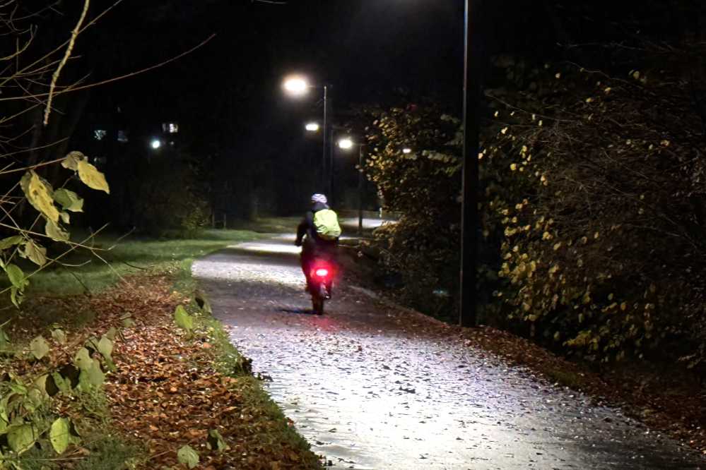 Die Stadt Dortmund hat auf dem Hundeweg, einem beliebten Fuß- und Radweg entlang einer alten Bahntrasse auf der Veloroute 5, ein Pilotprojekt mit neuen Solar-Leuchten gestartet. Auf dem südlichen Abschnitt zwischen Märkischer Straße und Deggingstraße wurden auf 300 Metern zehn Leuchten installiert, die per Funk gesteuert werden und auf Bewegungen reagieren, sodass sie nur bei tatsächlicher Nutzung ihre volle Leuchtkraft entfalten. Dies soll sowohl der Umwelt als auch dem Naturschutz zugutekommen. Das Projekt wird von der Dortmunder Energie- und Wasserversorgung GmbH (DEW21) umgesetzt, die für den Betrieb der Straßenbeleuchtung zuständig ist. Die Testphase dauert ein Jahr, in dem überprüft werden soll, ob die Technik zuverlässig funktioniert und alltagstauglich ist, bevor über einen Einsatz an anderen Standorten entschieden wird. Der Abschnitt wurde wegen wechselnder Lichtverhältnisse und schattiger Bereiche durch Bäume ausgewählt, um die Solar-Leuchten unter realistischen Bedingungen zu prüfen. Zur Information der Nutzer:innen hat die Stadt entlang der Teststrecke Hinweisschilder aufgestellt.