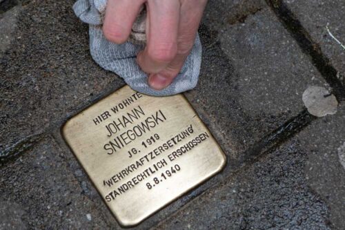 Am internationalen Tag des Gedenkens an die Opfer des Holocaust, putzten Mitglieder des AWO-Ortsvereins Mitte erneut Stolpersteine in der Nähe des Eugen-Krautscheid-Hauses am Westpark. Eine Geste, die nicht nur symbolisch gemeint ist – die frisch geputzten Steine setzen sich dadurch erneut deutlich vom Bürgersteig ab und werden so wieder für viele Wochen bewusst wahrgenommen. Der Glanz der Steine zeigt vielen Passanten: Hier wurde nicht vergessen. Auch AWO-Vorsitzende Anja Butschkau (MdL) machte bei der diesjährigen Reinigungsaktion mit. Aus Überzeugung: „Es ist wichtig, gerade in dieser Zeit, dass Menschen sich die Gräueltaten aus der Nazi-Zeit vor Augen führen – dass sie verstehen, wohin Hass gegen Minderheiten führen kann. Stolpersteine helfen dabei, die Erinnerung daran aufrechtzuerhalten. Wenn nur ein Bruchteil der vorbeilaufenden Menschen tatsächlich inhaltlich über sie stolpert, ist das jeden Aufwand wert. Vielen Dank an den Ortsverein Mitte für das heutige Reinigen der Stolpersteine – es war mir eine Ehre.“