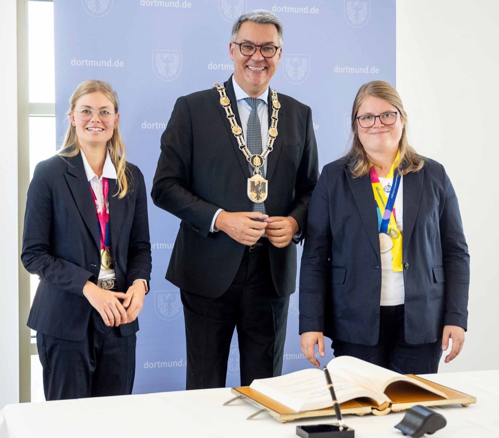 Aufgrund ihrer herausragenden Leistungen wurde beiden Sportlerinnen die Ehre zuteil, sich auf Einladung von Oberbürgermeister Thomas Westphal in das Goldene Buch der Stadt Dortmund einzutragen.