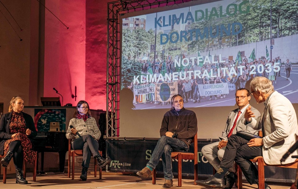 Auf einem mit 150 Teilnehmenden gut besuchten Klimadialog in der Pauluskirche diskutierten am 9. November Politiker*innen verschiedener im Rat vertretener Parteien, wie Klimaschutzmaßnahmen in Zukunft schneller und effektiver durch die Verwaltung der Stadt Dortmund umgesetzt werden können. Das Umweltamt hatte Mitte September auf eine Anfrage von Fridays for Future mitgeteilt, das Ziel der „Klimaneutralität 2035“ der Stadt könne nicht eingehalten werden. Dies sorgt für scharfe Kritik in der Klimagerechtigkeitsbewegung. Die Diskussion auf dem Podium der Veranstaltung zeigte, dass auch die Politik in Dortmund vielfach unzufrieden mit der schleppenden Umsetzung wichtiger Maßnahmen ist. Dies stünde im Widerspruch zum vorrangigen Stellenwert, den der Klimaschutz haben müsse. Impulse, welche die Diskussion belebten, kamen von Fridays for Future, von der Gewerkschaft ver.di, aus der Dortmunder Landwirtschaft und von der BürgerEnergie Dortmund eG i.G. Zudem wurde das bürgerschaftliche und zivilgesellschaftliche Engagement in Dortmund, hinter dem viele einzelne Akteure wie Organisationen stehen, positiv wahrgenommen.