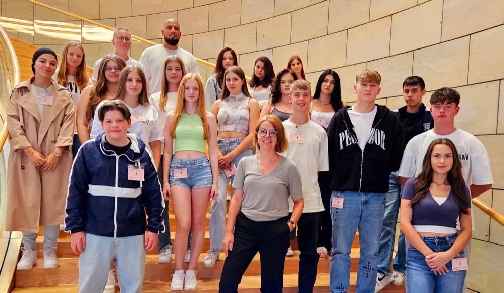 Die Dortmunder Landtagsabgeordnete Nadja Lüders durfte in dieser Woche zwei Kurse des Fachs Sozialwissenschaften der Max-Born-Realschule aus Dortmund-Asseln im nordrhein-westfälischen Landesparlament in Düsseldorf empfangen. Die Schülerinnen und Schüler der Jahrgangstufen 9 und 10 konnten neben einer Führung durch das Landtagsgebäude ausgiebig mit Nadja Lüders diskutieren. Diese Gelegenheit wurde von den Sowi-Kursen fleißig genutzt: Vom Ukraine Krieg und der derzeitigen Inflation, darüber dass das Wohnen auch in Dortmund immer teurer wird, bis hin zu Wählen ab 16 und der Cannabis-Legalisierung, brannte den Schülerinnen und Schülern eine große Bandbreite von Fragen unter den Nägeln. Dabei gab es bei dem einen oder anderen Thema auch innerhalb der Besuchsgruppe eine angeregte Diskussion, bei der die beiden begleitenden Lehrer und Lehrerinnen kurzerhand versprechen mussten, ein paar der Themen mit in die nächste Unterrichtsstunde zu nehmen. „Ich freue mich immer besonders auf Besuch von Schulen im Landtag. Auch diese Diskussion mit den Schülerinnen und Schülern hat mir wieder gezeigt, dass diese Generation – entgegen manch anderer Meinung – sehr wohl politisch interessiert ist und sich ganz genau eine Meinung bildet.“ erklärte Lüders zum Abschluss des Besuchs.