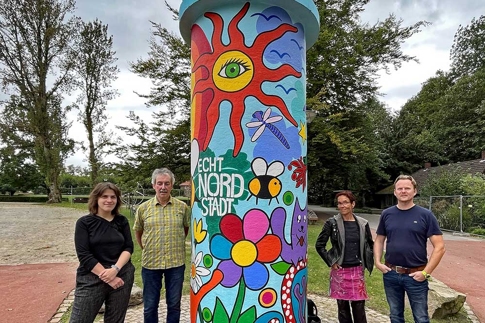 Initiiert wurde die Aktion vom Freundeskreis Hoeschpark e.V. mit finanzieller Unterstützung des Integrationsrates und des Stadtbezirksmarketings Innenstadt-Nord, das die Reinigung und Grundierung sowie die Bemalung der Litfaßsäule gefördert hat.