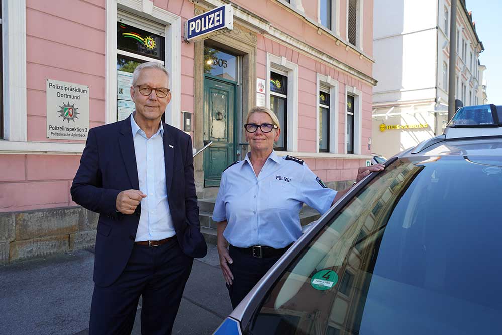 Bildzeile: Polizeipräsident Gregor Lange mit Polizeihauptkommissarin Martina Zeiger.