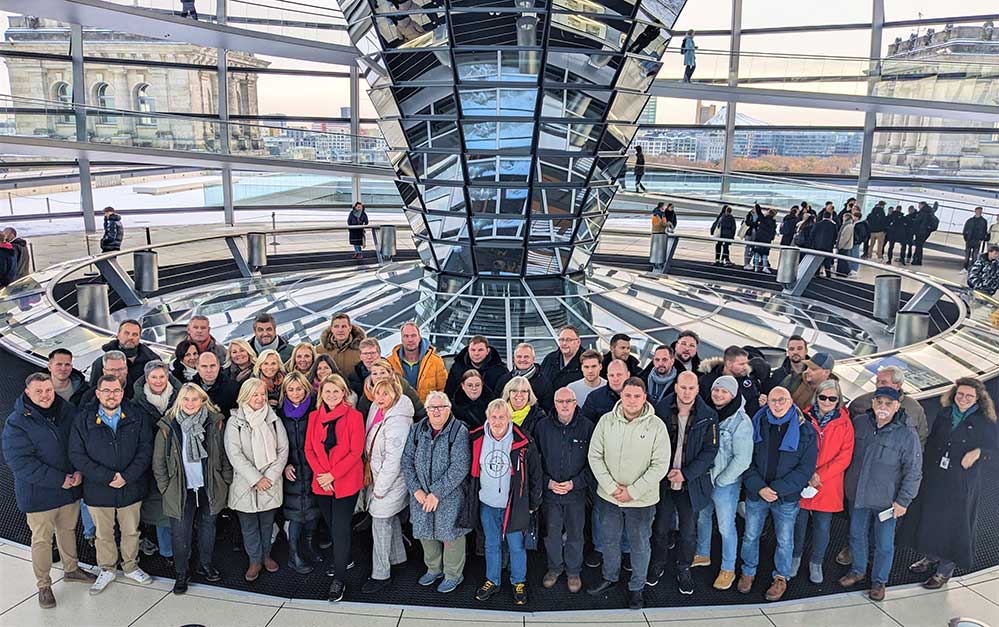 Die Dortmunder Bundestagsabgeordnete Sabine Poschmann lud zum vierten und letzten Mal in diesem Jahr zur politischen Informationsreise nach Berlin ein. Unter den 50 Dortmunder:innen waren Mitglieder des Bürgerforums Scharnhorst, Beschäftigte von DSW21 sowie der Dortmunder Kriminalpolizei. Neben dem Gespräch mit der Abgeordneten im Deutschen Bundestag standen der Besuch der Ausstellung „Tränenpalast“, des Bundeskanzleramtes, der Willy-Brandt-Stiftung sowie des Holocaust-Mahnmals auf dem Kurzprogramm. Ferner ging es per Stadtrundfahrt durch die winterliche Stadt, hoch auf den Fernsehturm und ins ZDF-Hauptstadtstudio zum „Morgenmagazin“.