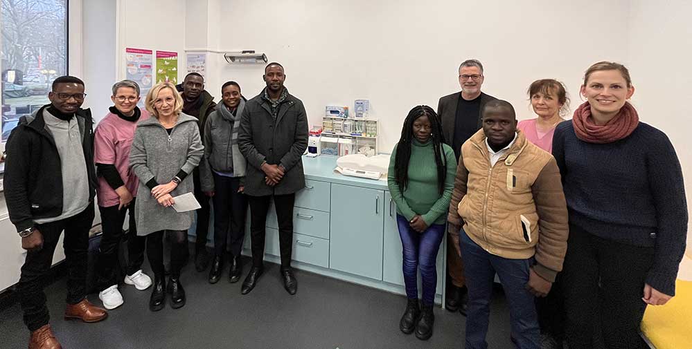 Die Delegation, angeführt von Holger Keßling, dem Leiter des Gesundheitsamtes, besuchte am 6. Dezember gemeinsam mit Klinikdirektor Dr. Isaac Mbingwani, Bereichsleiterin Dr. Anja Frieß und Ärztin Brigitte Schütte-Berning die Untersuchungsräume des Gesundheitsamtes. Holger Keßling erläuterte dabei die Grundzüge des deutschen Gesundheitssystems, während die Gäste aus Malawi die Gelegenheit nutzten, sich über die medizinische Versorgung und Strukturen zu informieren.