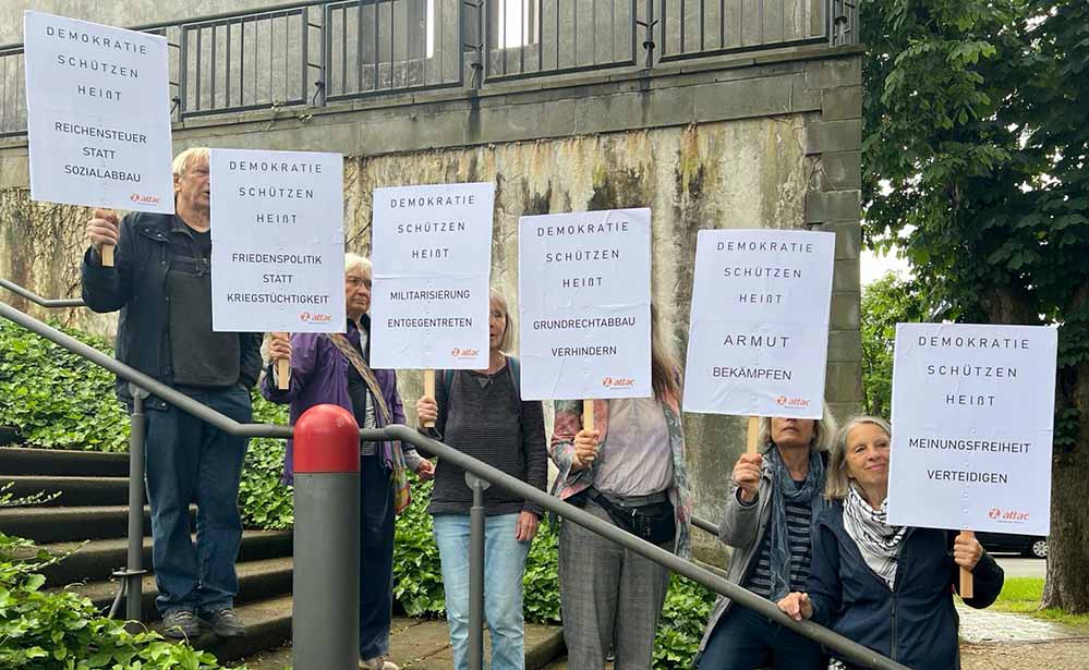 Seit 120 Jahren beteiligt sich Borsig/Rheinmetall an schwersten Kriegsverbrechen. Im Zweiten Weltkrieg schritten den Blitzkriegern die Konzernvertreter hinterher, um Stahlwerke und anderen Betriebe zu arisieren und zu rauben und 15 Millionen Zwangsarbeiter ins Reich zu holen, auf dass sie als Sklaven u.a. für Rheinmetall arbeiteten. Viele wurden durch Arbeit vernichtet. Allein die Reichswerke Hermann Göring (Dachkonzern für Rheinmetall) versklavten 300.000 sog. Ostarbeiter. Viele Tausend Sklaven schufteten an anderen Rheinmetallstandorten. Wir haben viel zu lange unkritisch auf den Namen Borsigplatz gesehen und nun müssen wir endlich sehr kritisch auf den Namen des neuen BVB-Sponsors Rheinmetall sehen. Geplant ist der zusätzliche Freispruch für die Kriegsgewinnler – mittels Fusion von Rheinmetall und dem BVB. Es wird im Stadion fürs Töten und Sterben geworben. Wir brauchen eine große Anklage entsprechend der Forderung im Buchenwald-Schwur: Wir stellen den Kampf erst ein, wenn auch der letzte Schuldige vor den Richtern der Völker steht. Dies, damit im Interesse der Millionen Opfer Recht gesprochen wird. Und ihr Spruch kann nur lauten: Schuldig. Den Schuldigen muss das Handwerk gelegt werden.