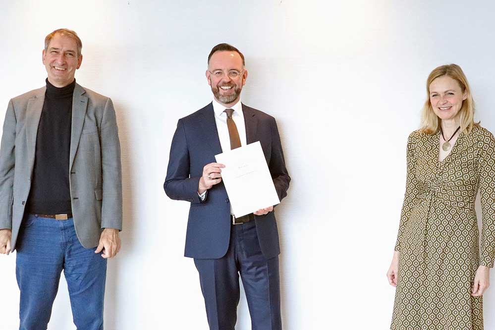 Am 10.12.2021 hat Markus Ausetz die Ernennungsurkunde aus den Händen der Präsidentin des Oberlandesgerichts Hamm Gudrun Schäpers im Beisein des Präsidenten des Amtsgerichts Dortmund Jörg Heinrichs erhalten (siehe Foto).