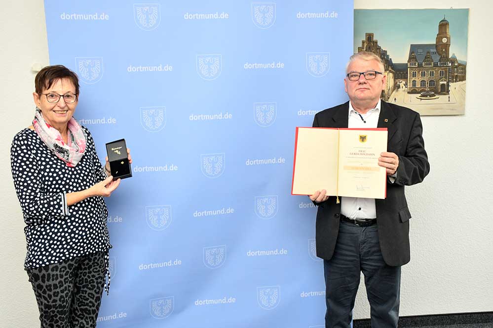 Bürgermeister Norbert Schilff hat Gerda Bogdahn und Gabriele Schnittker am 11. Oktober für ihr geleistetes Engagement im Rahmen der Ausübung ihres politischen Ehrenamts, zum Wohl der Stadt Dortmund, geehrt.