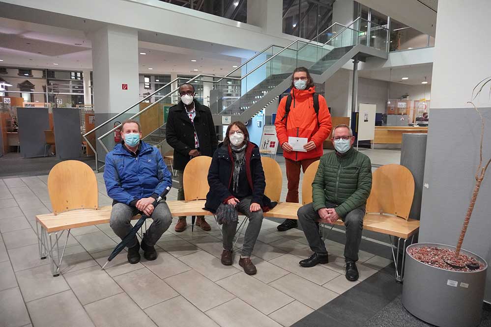 Bildzeile: v.l. Thorsten Hoffmann (CDU), Armel Djine (Die Grünen), Svenja Noltemeyer (Die Grünen), Benno Beckmann (Die Grünen) und Uwe Wallrabe (CDU).