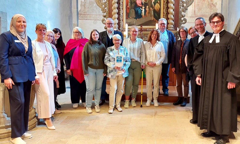 Auf dem Bild: Kamen zum Feiern zusammen (v. l.) – Johanna Gräfin von Brühl, Diözesanoberin und stv. Diözesanleiterin, Michaela Büschler, Hospizfachkraft Kinder- und Jugendhospizdienst, Karin Budde, Bereichsleitung Kinder- und Jugendhospizdienst, Siegfried Krix, Diözesangeschäftsführer, Christina Motschull, komm. Gesamtleitung, Anja Kämper, Koordinatorin Hospizdienst Schwerte, Bürgermeisterin Barbara Brunsing, Daniela Wiemers, Koordinatorin Erwachsenentrauerbegleitung, Jürgen Fenneker, stv. Stadtbeauftragter Malteser Dortmund, Gabriele Hemicker und Claudia Schmidt-Schäffer, Hospizfachkräfte im Erwachsenenhospizdienst, Lars Wilger, stv. Diözesangeschäftsführer, Michael Görner, Malteser Stiftung St. Sebastian, Silke Willing, Bereichsleitung Erwachsenenhospizdienst sowie Butler George.
