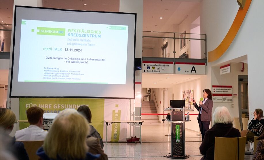 „Das Bewusstsein für die Lebensqualität in der Krebstherapie ist enorm gestiegen“, betont Dr. Barbara Kipp. So wird nicht nur auf die körperliche Behandlung geachtet, sondern auch darauf, dass die Patientinnen emotional stabil durch die Therapie kommen. Hierfür steht im Klinikum Dortmund ein festes psychoonkologisches Angebot zur Verfügung. Hier finden Betroffene und Angehörige Unterstützung dabei, die Diagnose und den Therapiealltag zu bewältigen und gemeinsam Strategien zu entwickeln, die dabei helfen, besser mit der Erkrankung umzugehen.