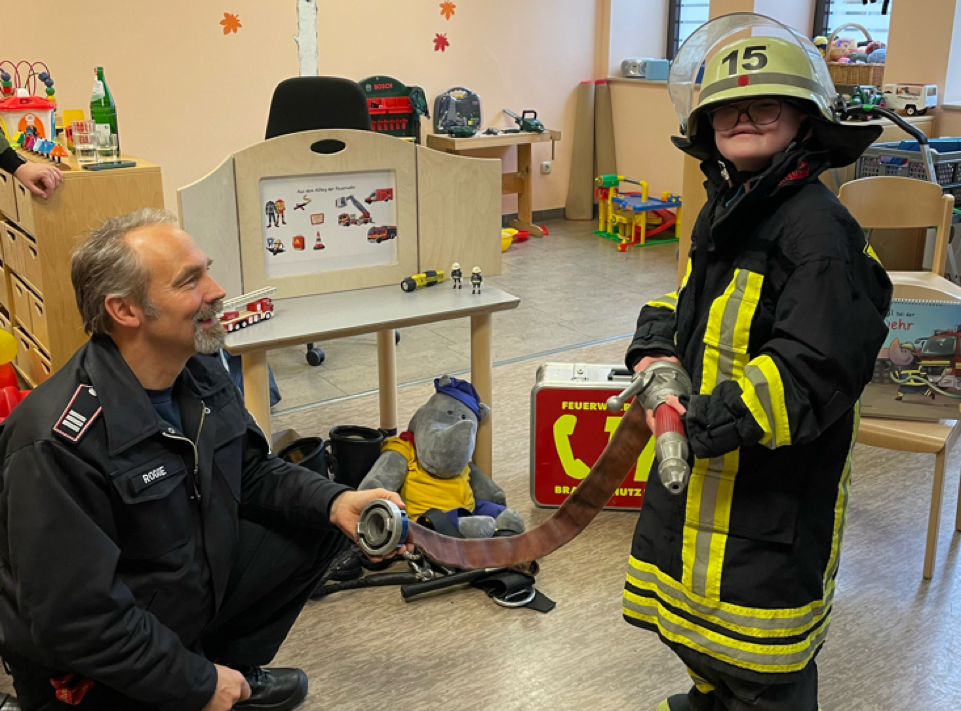 Die Kinder hatten viel Spaß mit dem plappernden Nashorn und vor allem beim Anprobieren der Feuerwehruniform.